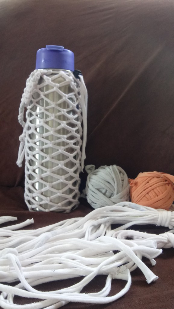 See below our creations from textiles salvaged on the island!